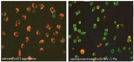 JC-1 是一種廣泛用于檢測(cè)線粒體膜電位△Ψm 的理想熒光探針??梢詸z測(cè)細(xì)胞、組織或純化的線粒體膜電位