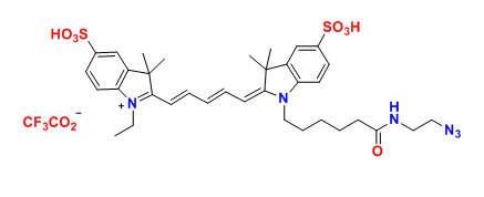 各種花青5(Cy5)染料已用于標(biāo)記生物分子,用于熒光成像和其他基于熒光的生化分析。它們廣泛用于標(biāo)記肽,蛋白質(zhì)和寡核苷酸等。Cy5 染料是最常見的紅色熒光團中的一種。這些多功能熒光團可以耐受3-10的pH范圍,用于生物相關(guān)pH的各種應(yīng)用。該染料還具有DMSO耐受性和光穩(wěn)定性,能夠在不損失性能的情況下從儲存轉(zhuǎn)移至分析。水溶性消除了在測定緩沖液中對有機溶劑的需要。我們的Cy5染料經(jīng)過全面QC測試,可確保高水平的發(fā)色團和活性染料含量。單活性染料適用于蛋白質(zhì)和寡核苷酸的靶向,精確標(biāo)記,雙活性染料更適合于一般標(biāo)記。建議使用NHS酯染料標(biāo)記胺基,建議使用馬來酰亞胺染料標(biāo)記硫醇基團。該Cy5 疊氮化物選擇性地與炔基反應(yīng)。